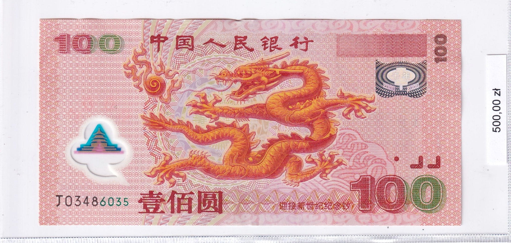 2000 - Chiny - 100 Yuan - Nowe Millennium