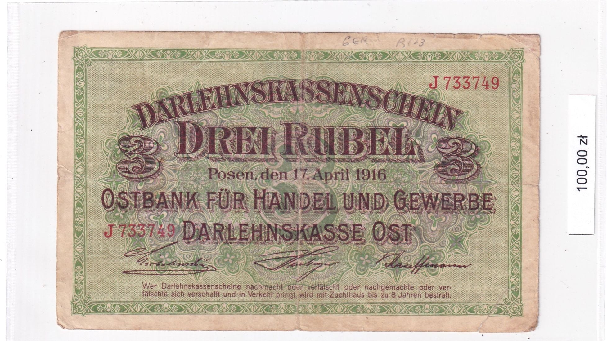 Banknoty Świata Germany 3 Rubles